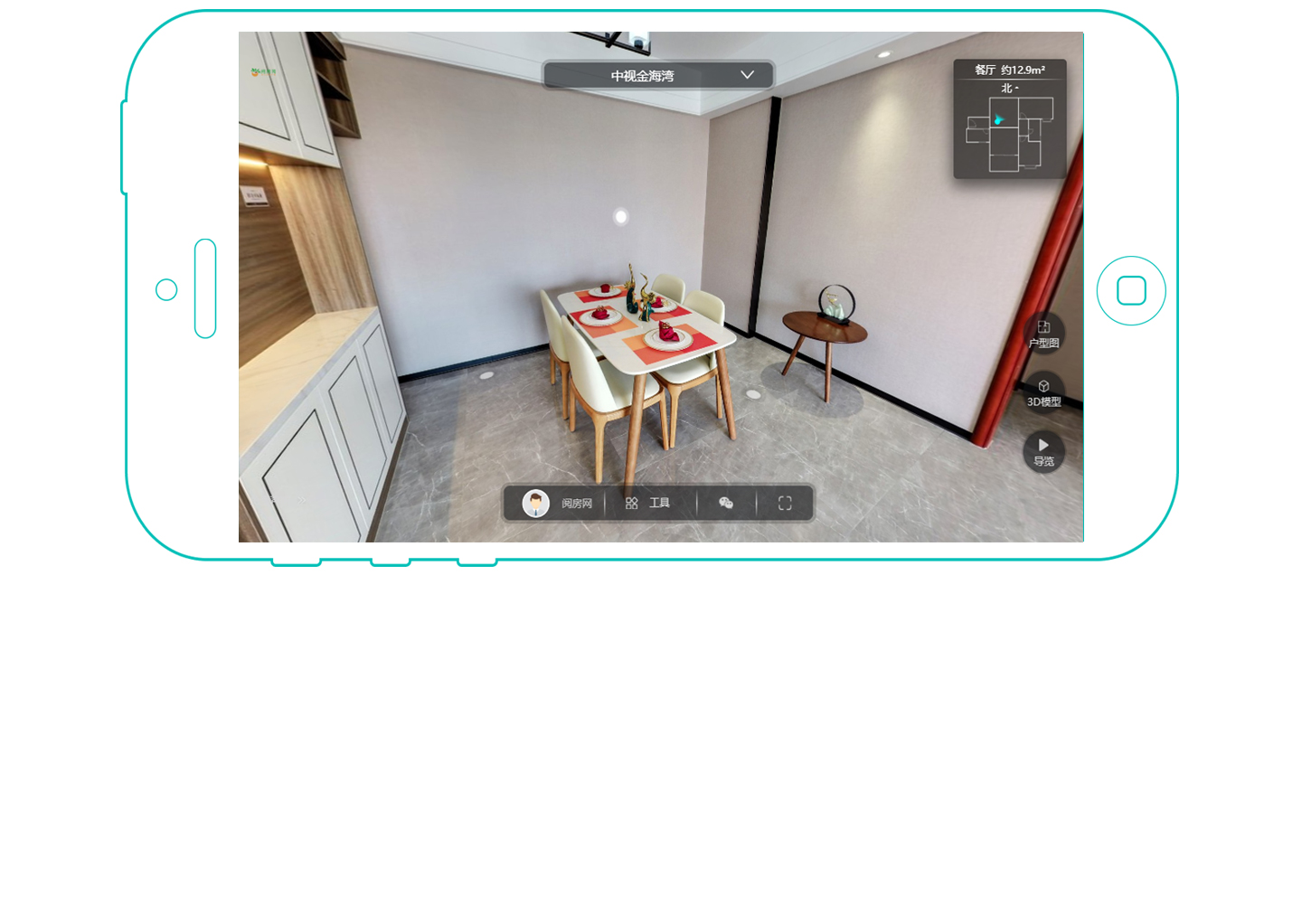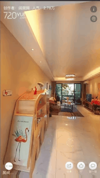 >> 可任意变换自己在房间中的位置,观看房屋的三维结构、户型朝向、空间尺寸、装修内饰等。